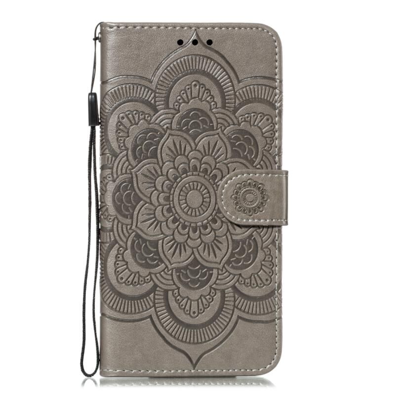 Θήκη για iPhone 11 Pro Max, Δερμάτινη, Οριζόντια, με σχέδιο Mandala σε ανάγλυφο, με βάση, θήκες για κάρτες, πορτοφόλι, κορνίζα φωτογραφιών & λουρί (Μαύρο)