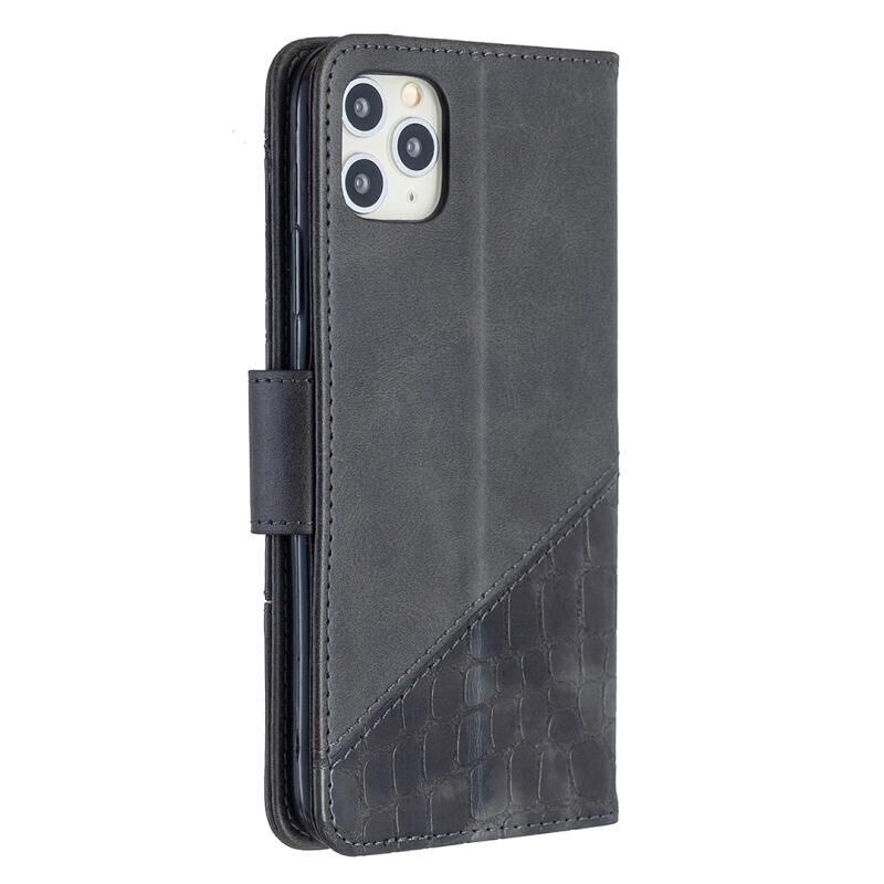 For iPhone 11 Pro Max Matching Color Crocodile Texture Horizontal Flip PU Leather Case with Wallet & Holder & Card Slots(Black)