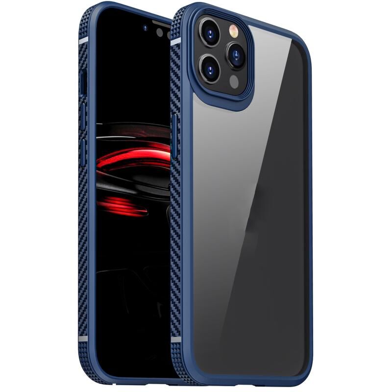 For iPhone 11 Pro Max MG Series Carbon Fiber TPU + Clear PC Four-corner Airbag Shockproof Case (Blue)