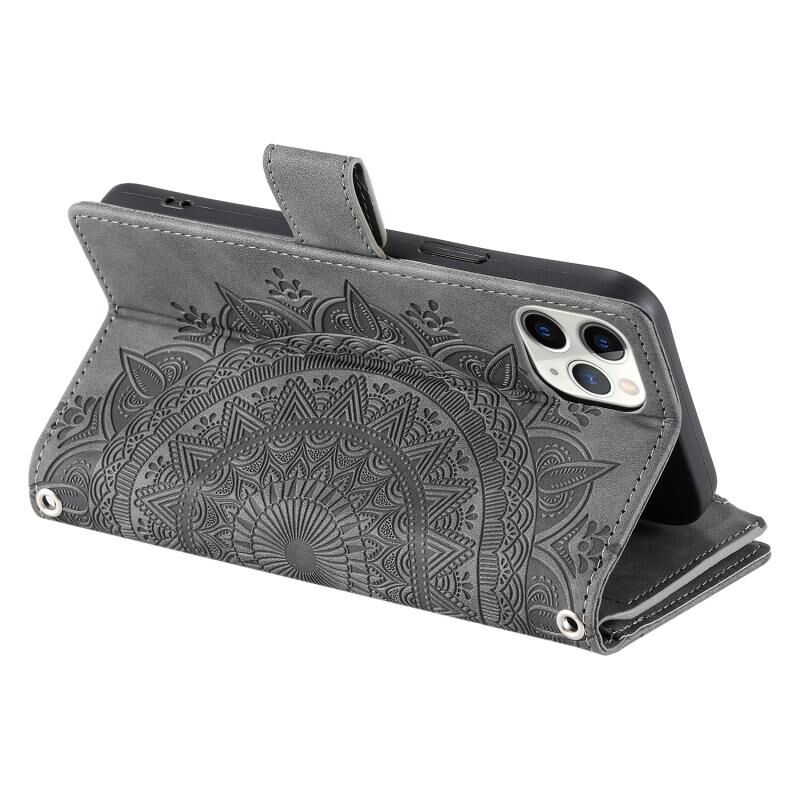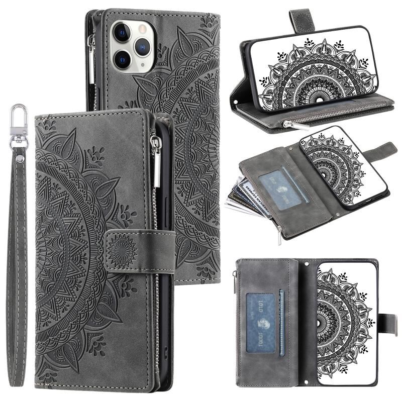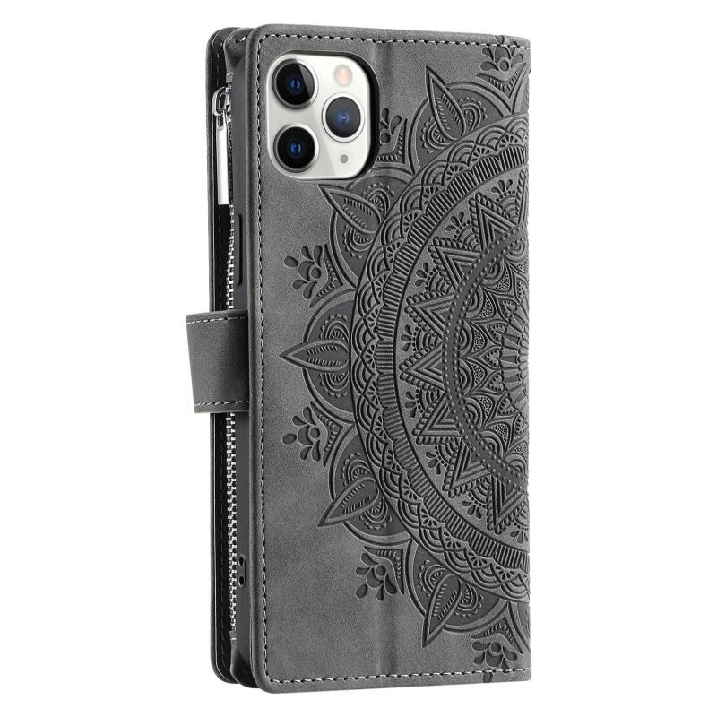 For iPhone 11 Pro Max Multi-Card Totem Zipper Leather Phone Case(Grey)