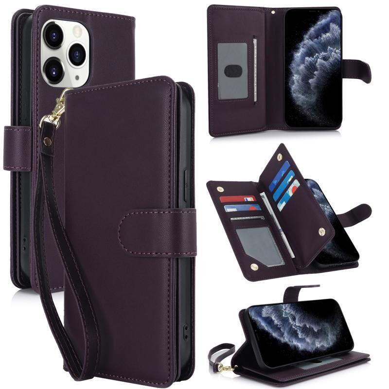 For iPhone 11 Pro Max Multi-Card Wallet RFID Leather Phone Case(Dark Purple)