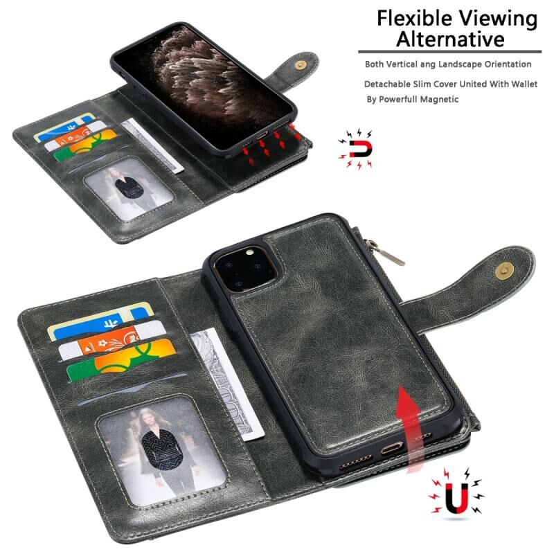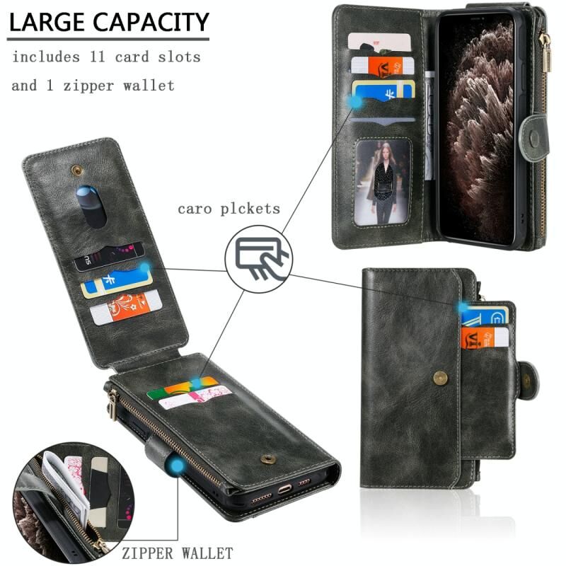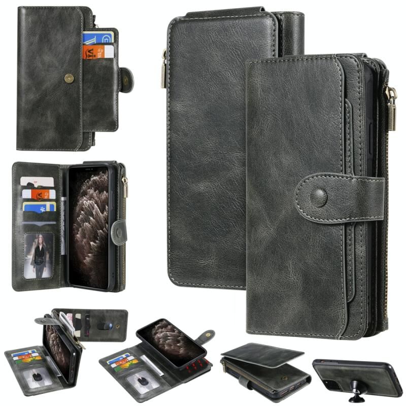 For iPhone 11 Pro Max Multifunctional Retro Detachable Magnetic Horizontal Flip Leather Case with Card Slots & Holder & Wallet & Photo Frame(Dark Green)