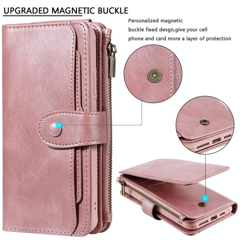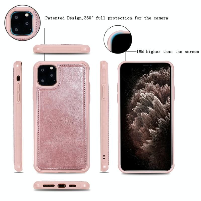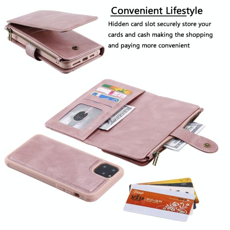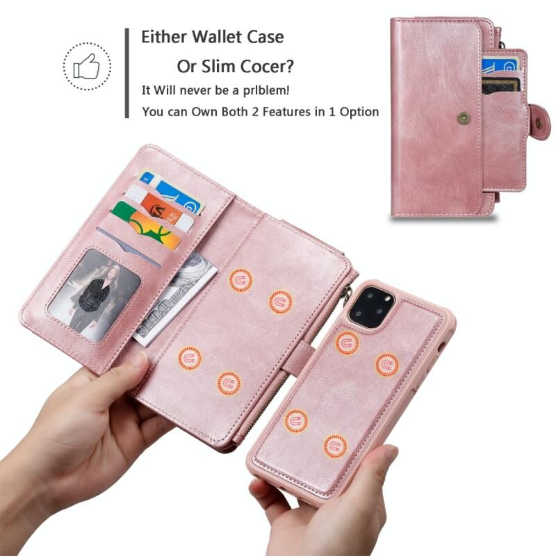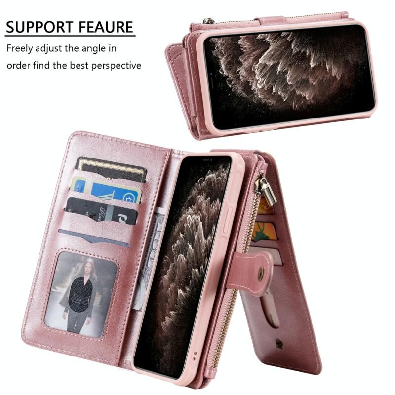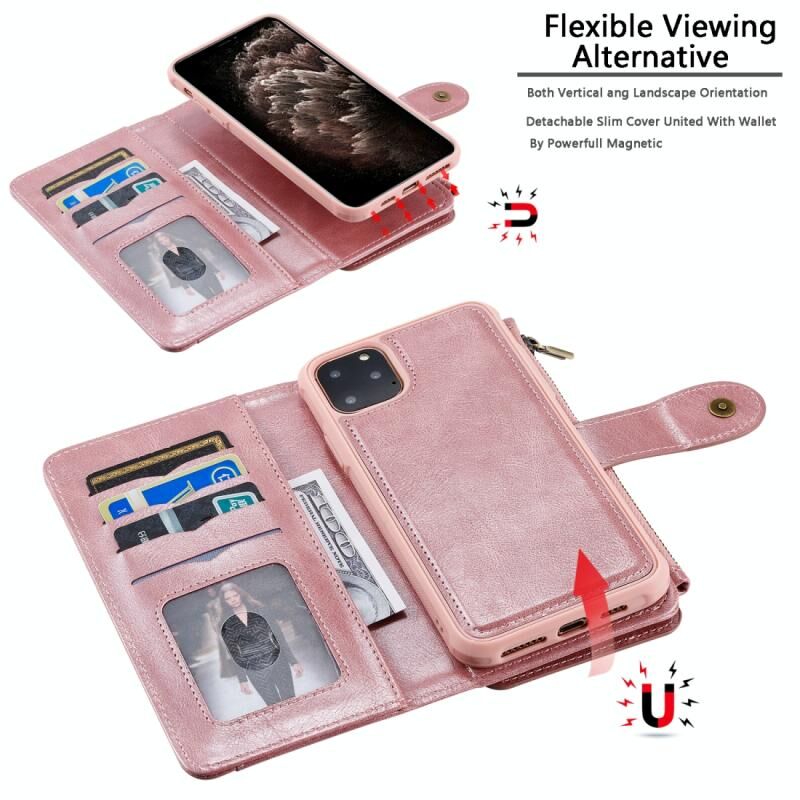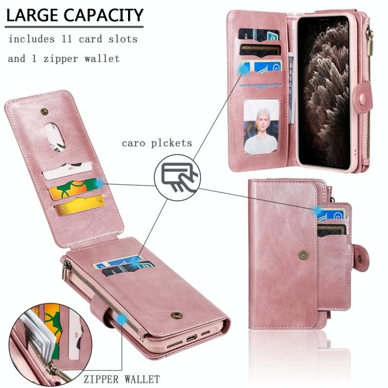 For iPhone 11 Pro Max Multifunctional Retro Detachable Magnetic Horizontal Flip Leather Case with Card Slots & Holder & Wallet & Photo Frame(Rose Gold)