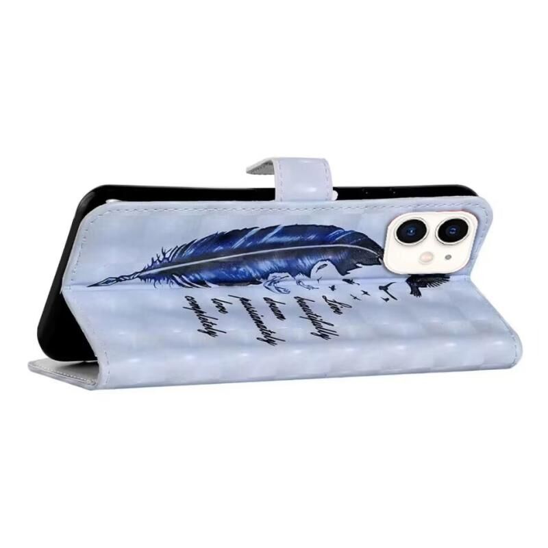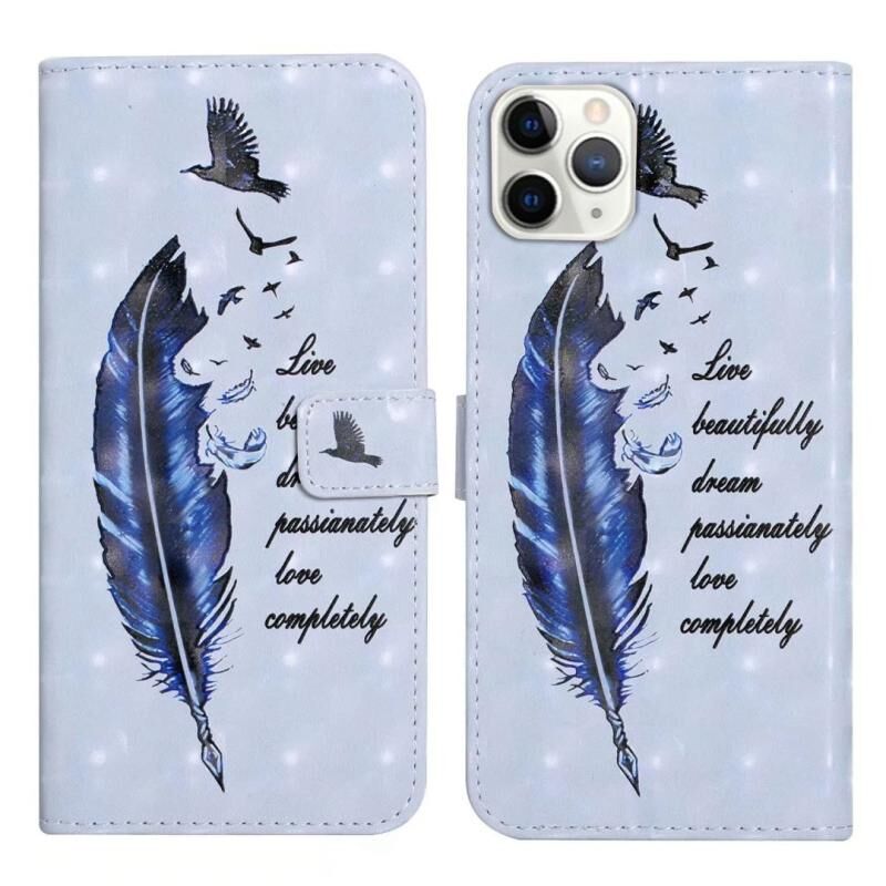 For iPhone 11 Pro Max Oil Embossed 3D Drawing Leather Phone Case(Blue Feather)