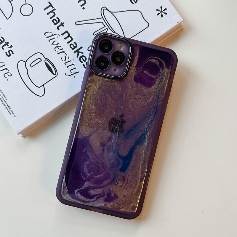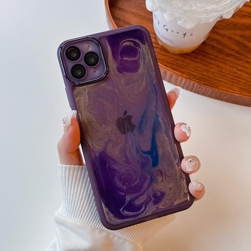 For iPhone 11 Pro Max Oil Painting Electroplating TPU Phone Case(Purple)