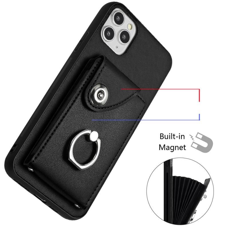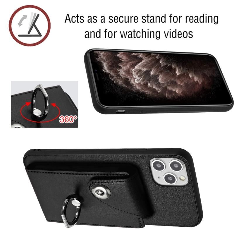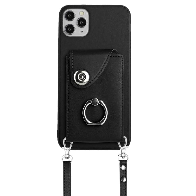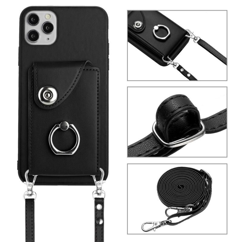 For iPhone 11 Pro Max Organ Card Bag Ring Holder Phone Case with Long Lanyard(Black)