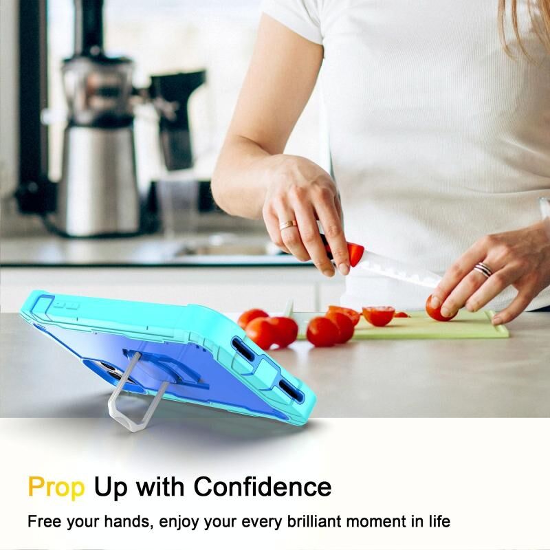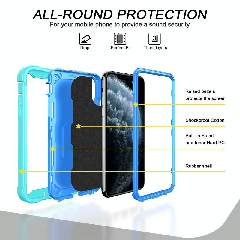 For iPhone 11 Pro Max PC + Rubber 3-layers Shockproof Protective Case with Rotating Holder (Mint Green + Blue)