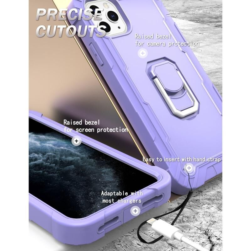 For iPhone 11 Pro Max PC + Rubber 3-layers Shockproof Protective Case with Rotating Holder (Purple)