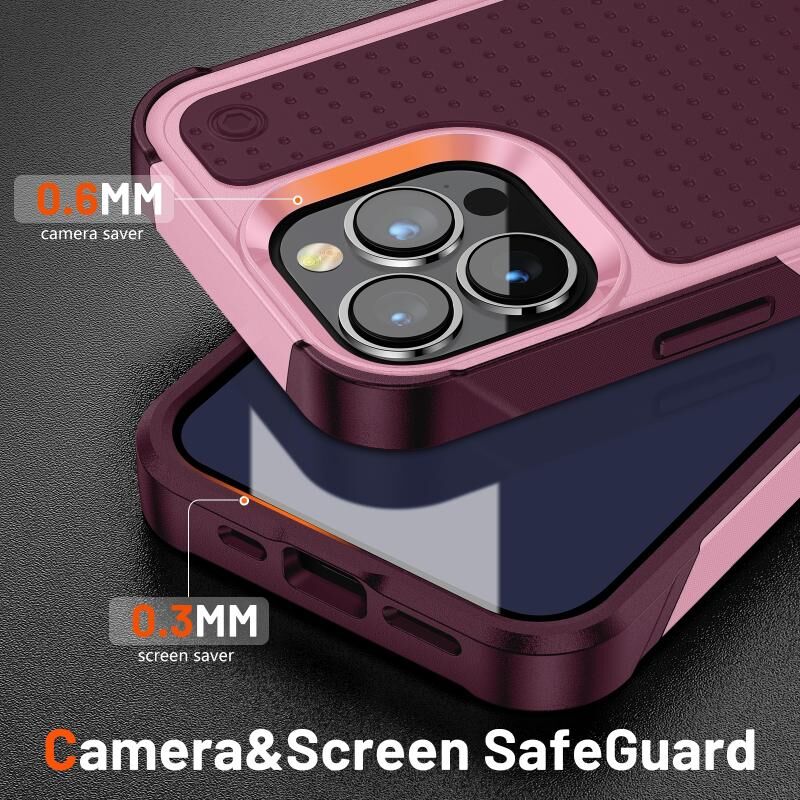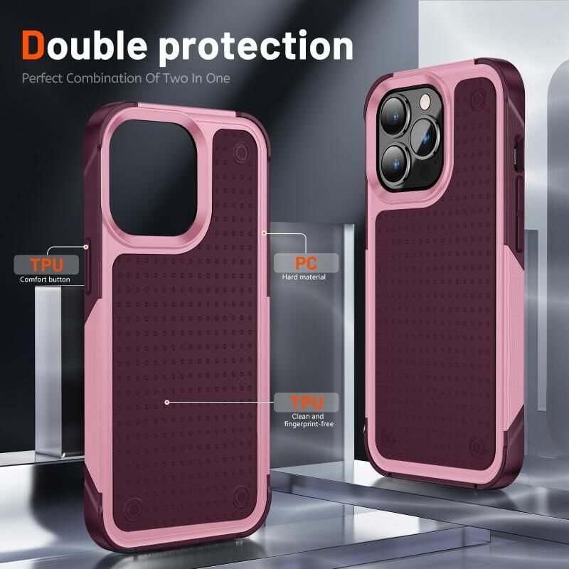 For iPhone 11 Pro Max PC + TPU Shockproof Protective Phone Case(Pink+Dark Red)