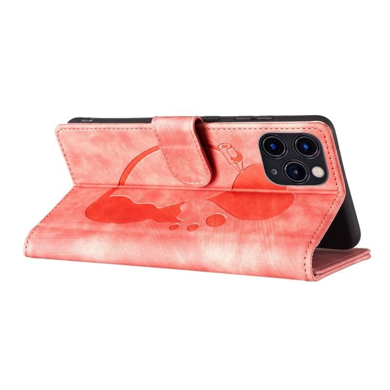For iPhone 11 Pro Max Pen Heart Cat Embossed Leather Phone Case(Orange)