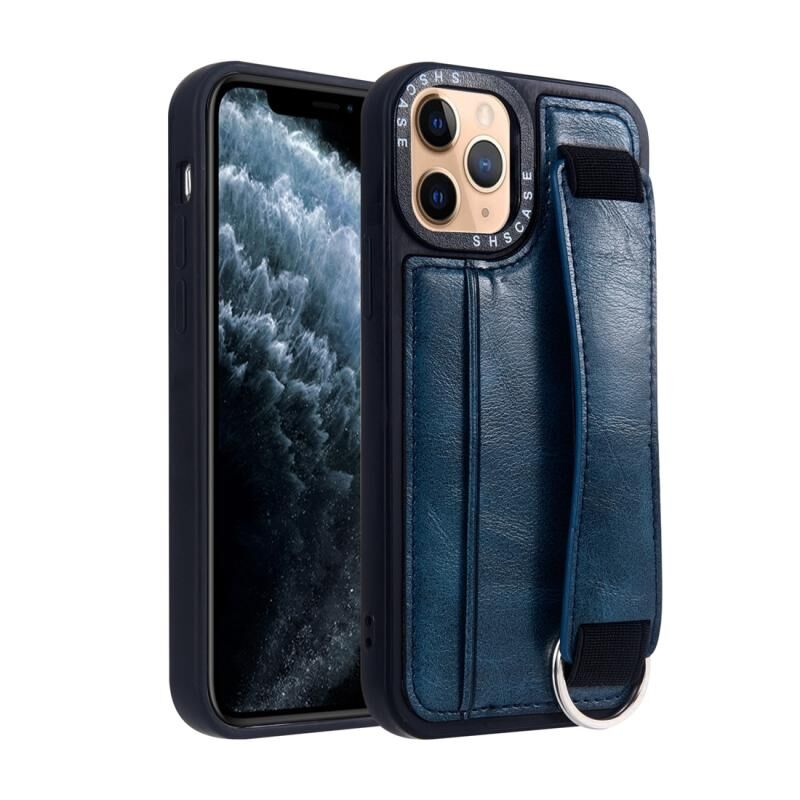For iPhone 11 Pro Max Photo Frame Card Wallet Wrist Strap Holder Back Cover Phone Case(Royal Blue)