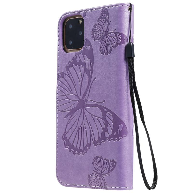 For iPhone 11 Pro Max Pressed Printing Butterfly Pattern Horizontal Flip PU Leather Case with Holder & Card Slots & Wallet & Lanyard (Purple)