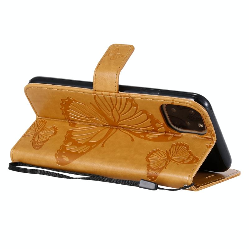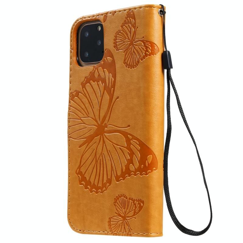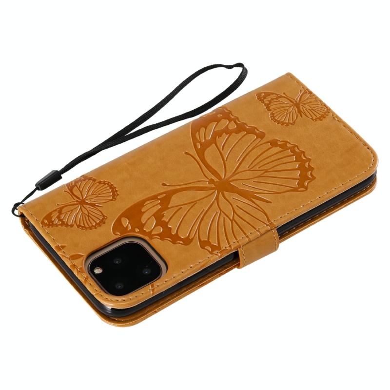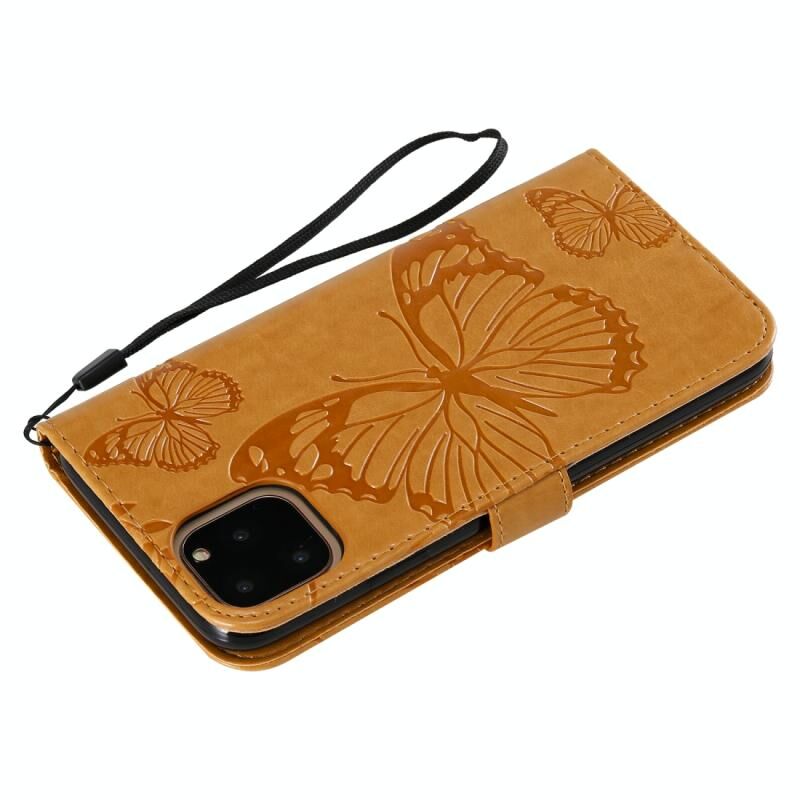Θήκη για iPhone 11 Pro Max με εκτύπωση πεταλούδας, οριζόντια, από δερματίνη PU με βάση στήριξης, θήκες για κάρτες, πορτοφόλι και λουρί (Χρυσό Ρόδινο).