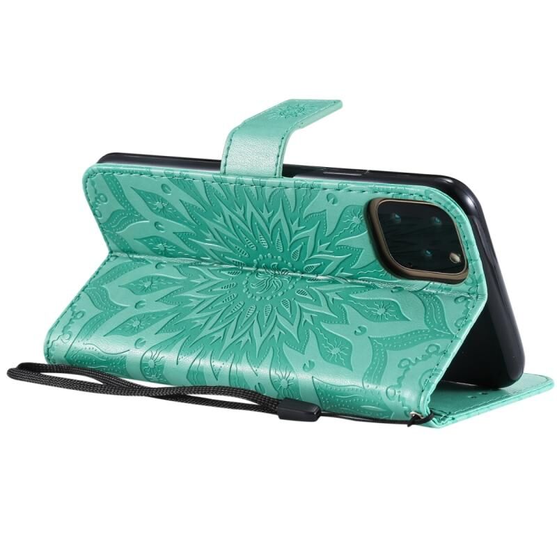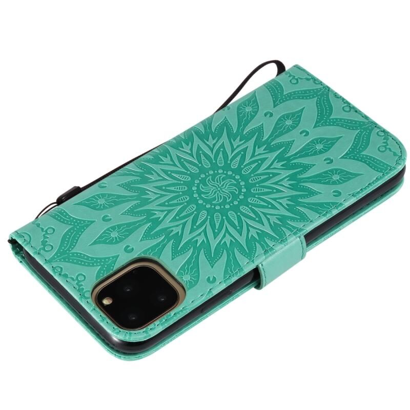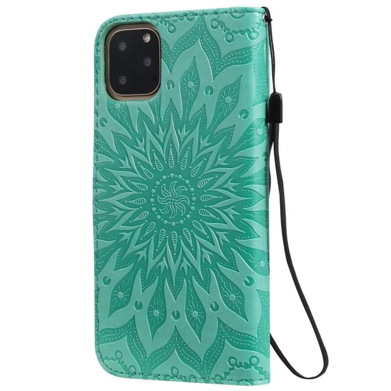 Θήκη για iPhone 11 Pro Max με εκτύπωση Pressed, σχέδιο ηλίανθου, οριζόντια αναδιπλούμενη από δερματίνη PU, με βάση & θήκες για κάρτες & πορτοφόλι & λουρί.