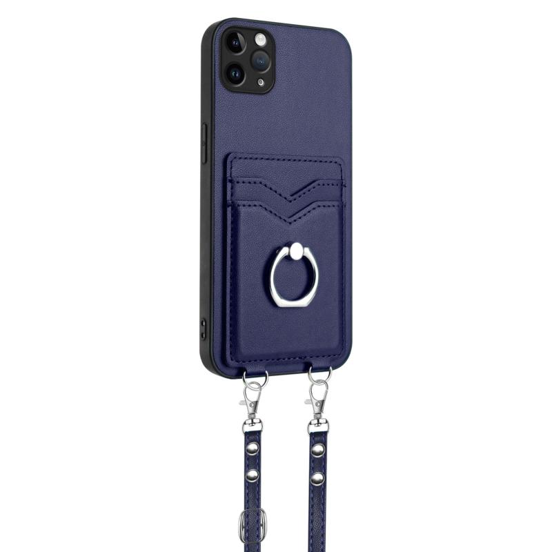 For iPhone 11 Pro Max R20 Crossbody Rope Ring Card Holder Phone Case(Blue)