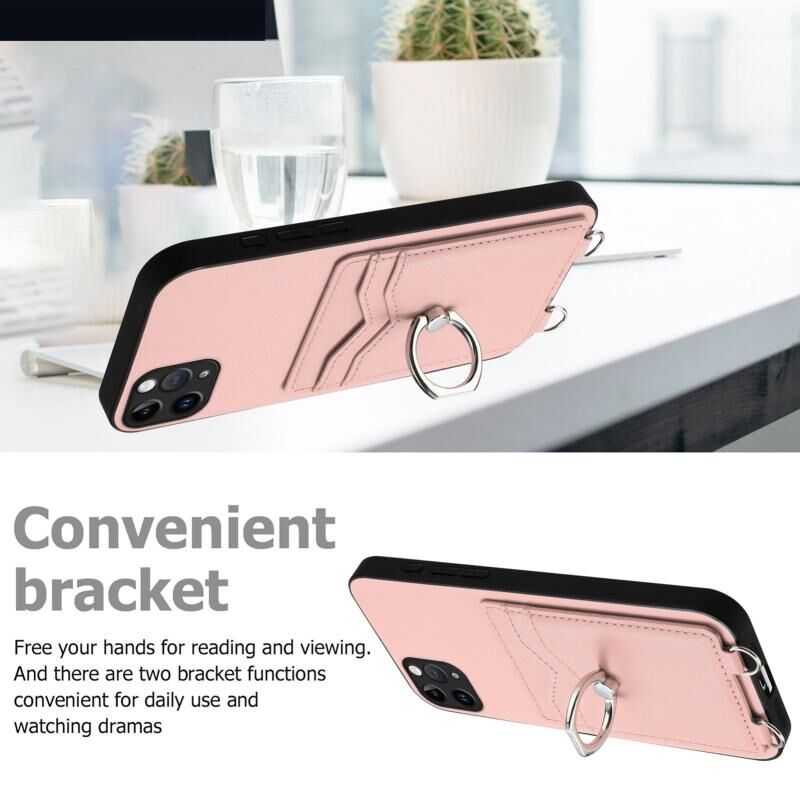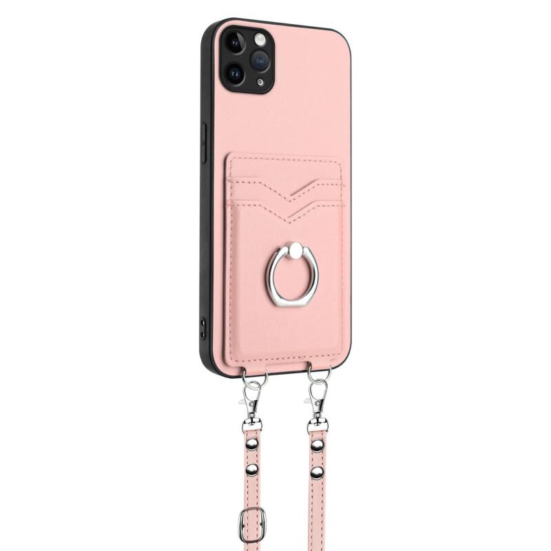 Θήκη τηλεφώνου για iPhone 11 Pro Max R20, με κορδόνι, δακτύλιο και θήκη για κάρτες (Ροζ)