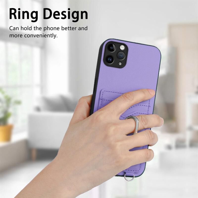 Θήκη τηλεφώνου για iPhone 11 Pro Max R20, με κορδόνι, δακτύλιο και θήκη για κάρτες (Ροζ)