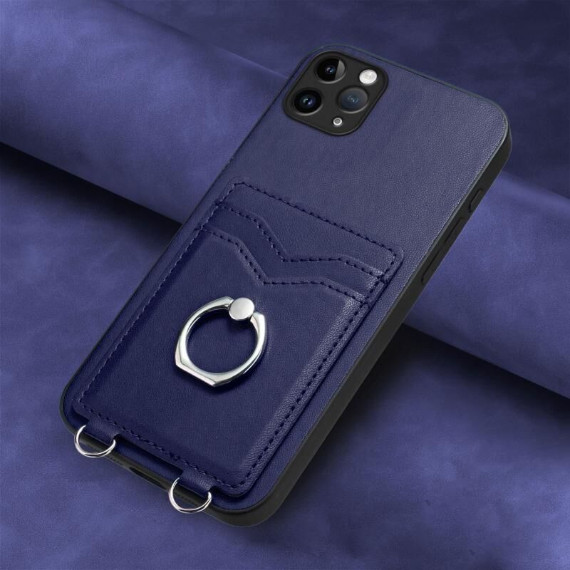 For iPhone 11 Pro Max R20 Ring Card Holder Phone Case(Blue)