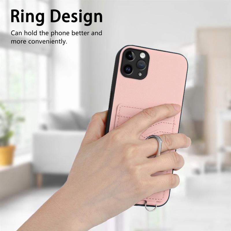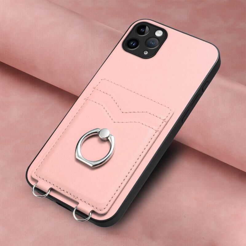 For iPhone 11 Pro Max R20 Ring Card Holder Phone Case(Pink)