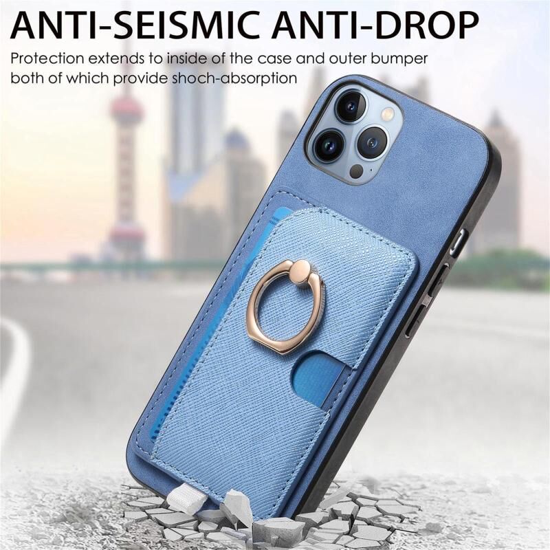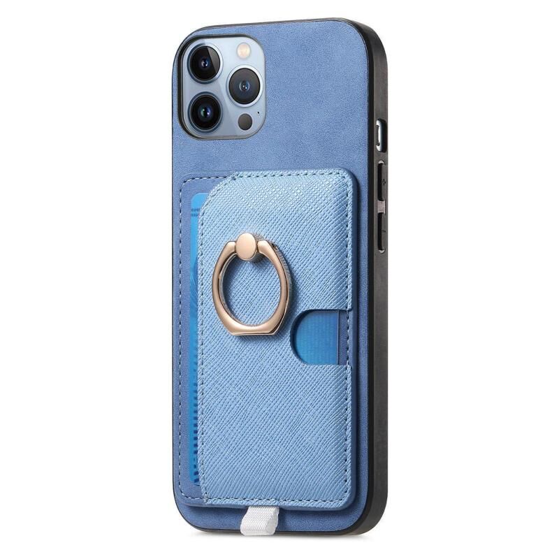 For iPhone 11 Pro Max Retro Cross Leather Ring Side Insert Card Bag MagSafe Phone Case(Blue)