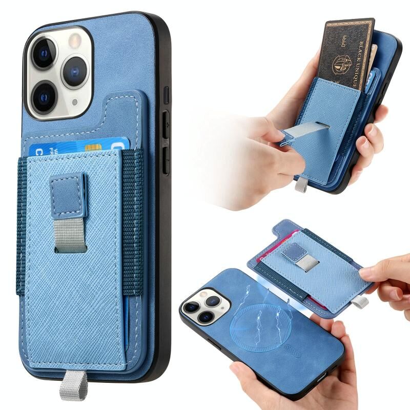 Θήκη κινητού για iPhone 11 Pro Max, Retro MagSafe, Δερμάτινη τσάντα με κάρτες που τραβιέται, Πίσω Θήκη (Κίτρινο)