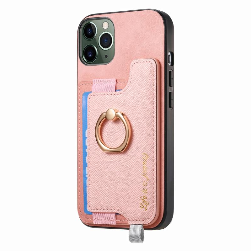 For iPhone 11 Pro Max Retro Magsafe Cross Leather Ring Holder Card Bag Phone Case(Pink)