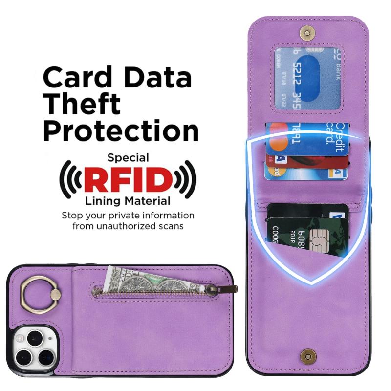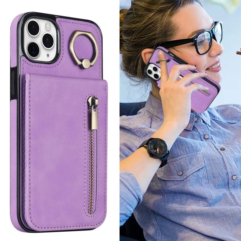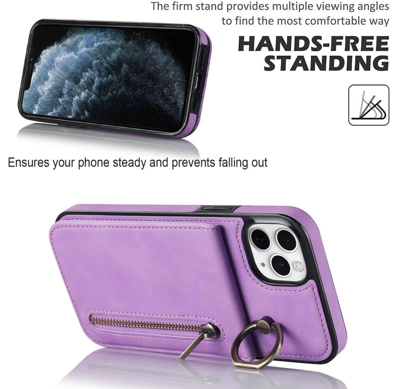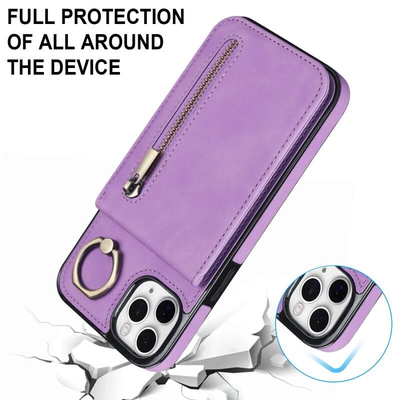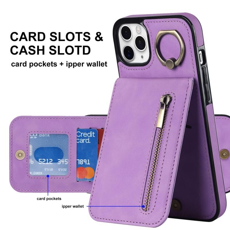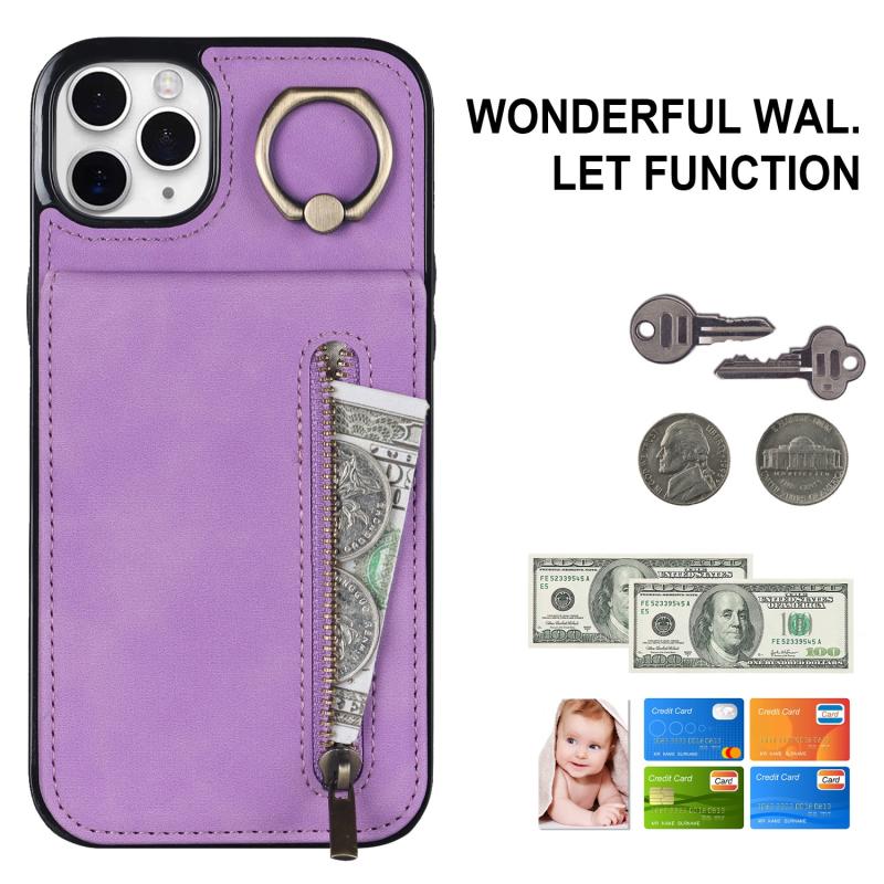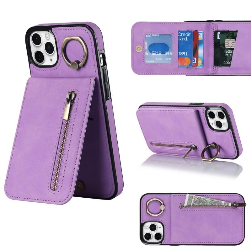 Για iPhone 11 Pro Max Θήκη με Δαχτυλίδι, Φερμουάρ & Θήκη RFID Καρτών (Μωβ)