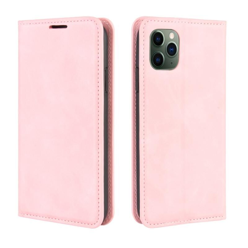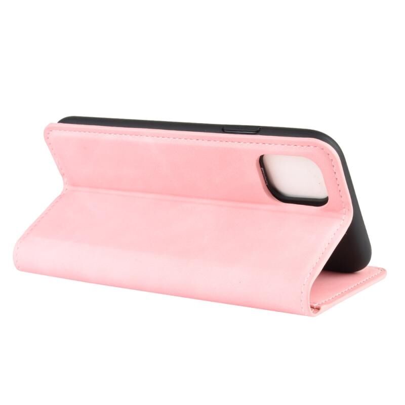 For iPhone 11 Pro Max Retro-skin Business Magnetic Suction Leather Case with Purse-Bracket-Chuck(Pink)