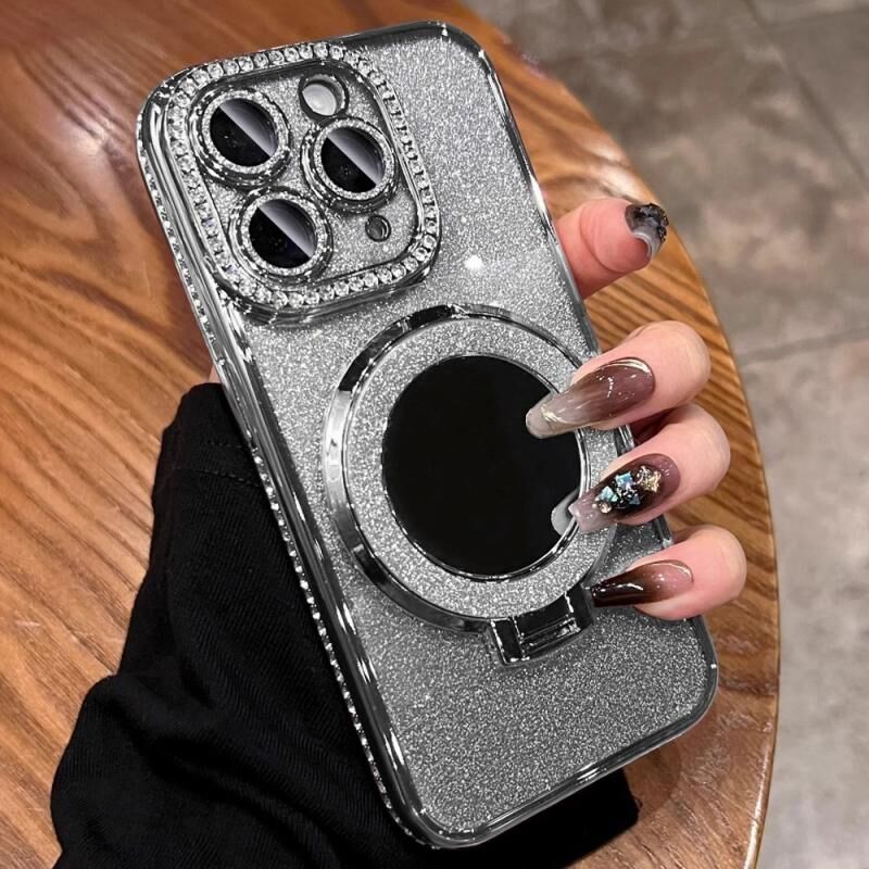 For iPhone 11 Pro Max Rhinestone Mirror Glitter MagSafe TPU Phone Case(Space Silver)
