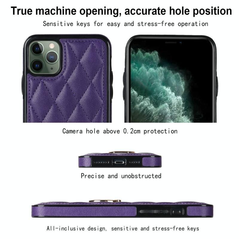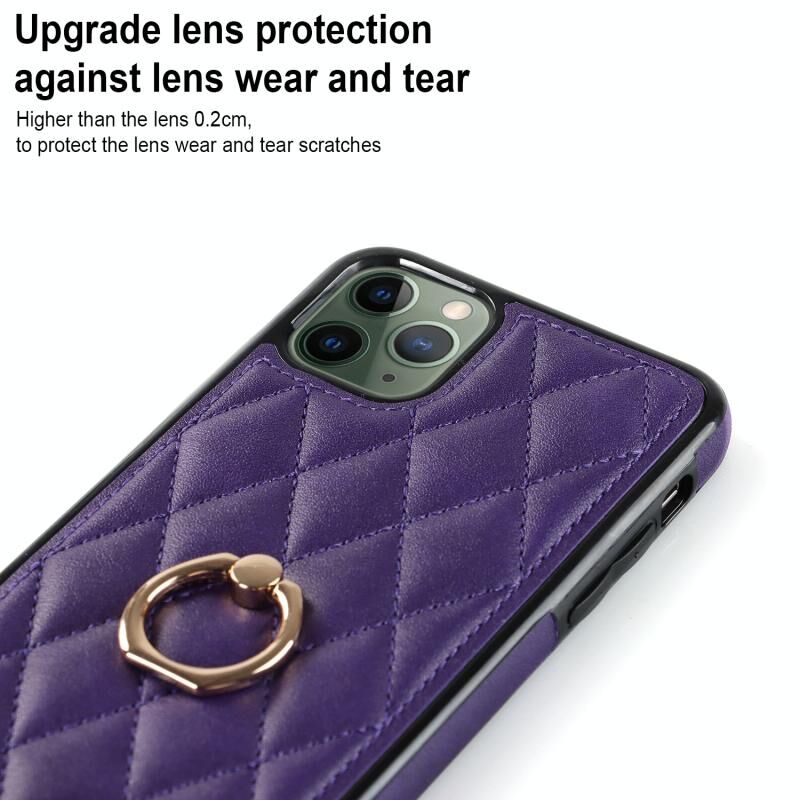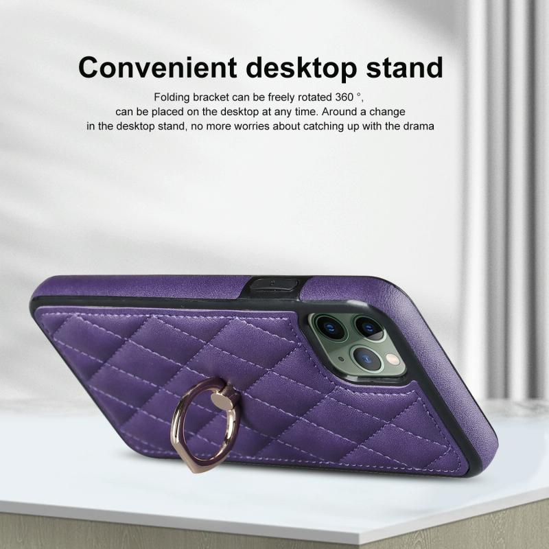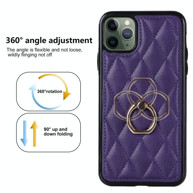 For iPhone 11 Pro Max Rhombic PU Leather Phone Case with Ring Holder(Purple)