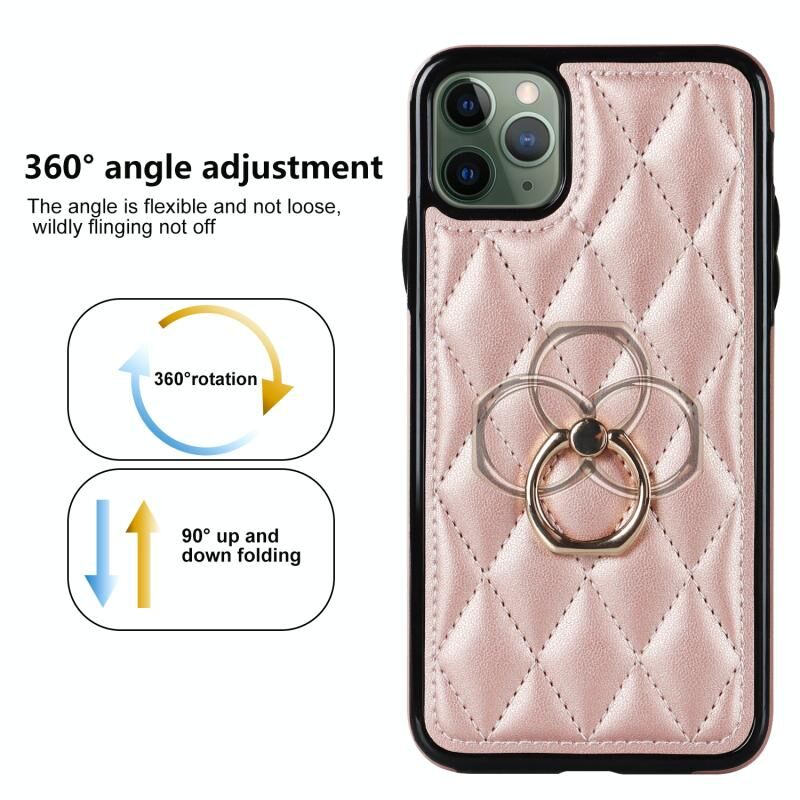 For iPhone 11 Pro Max Rhombic PU Leather Phone Case with Ring Holder(Rose Gold)