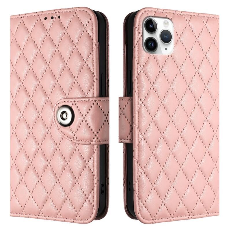 For iPhone 11 Pro Max Rhombic Texture Flip Leather Phone Case with Lanyard(Coral Pink)