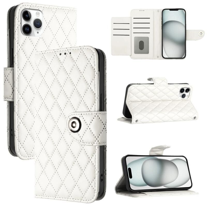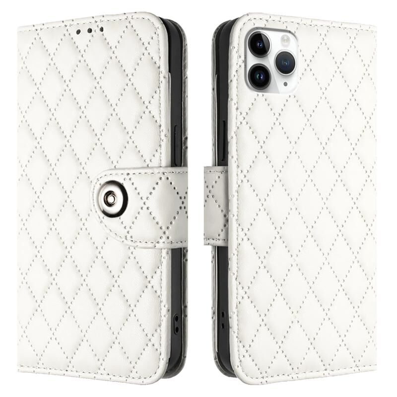Θήκη τηλεφώνου από δέρμα με ανάγλυφη υφή ρόμβου για iPhone 11 Pro Max με κορδόνι (Λευκό)