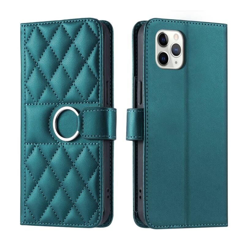 For iPhone 11 Pro Max Ring Buckle Rhombic Leather Phone Case(Green)