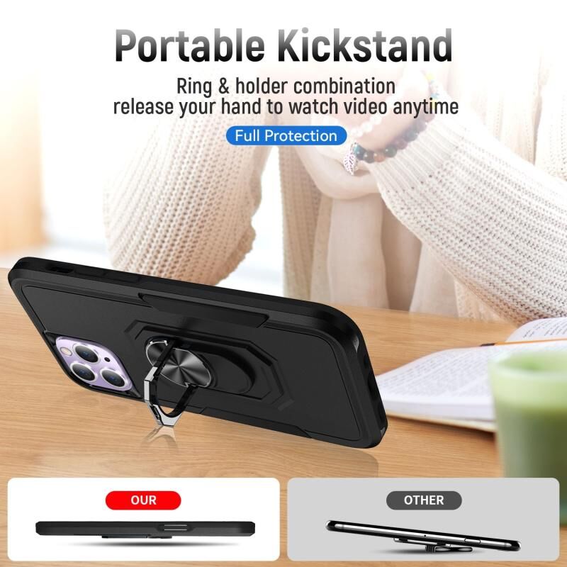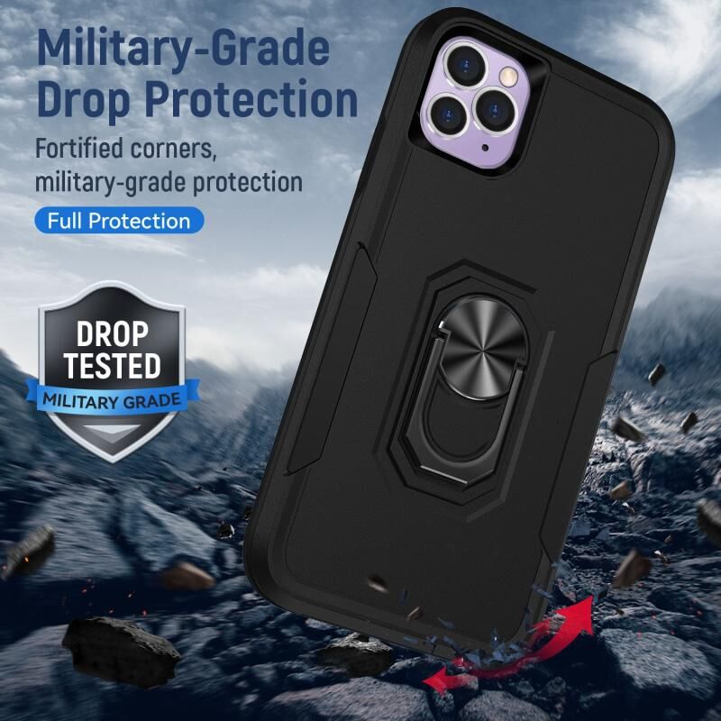 For iPhone 11 Pro Max Ring Kickstand Heavy Duty Shockproof Phone Case (Black)