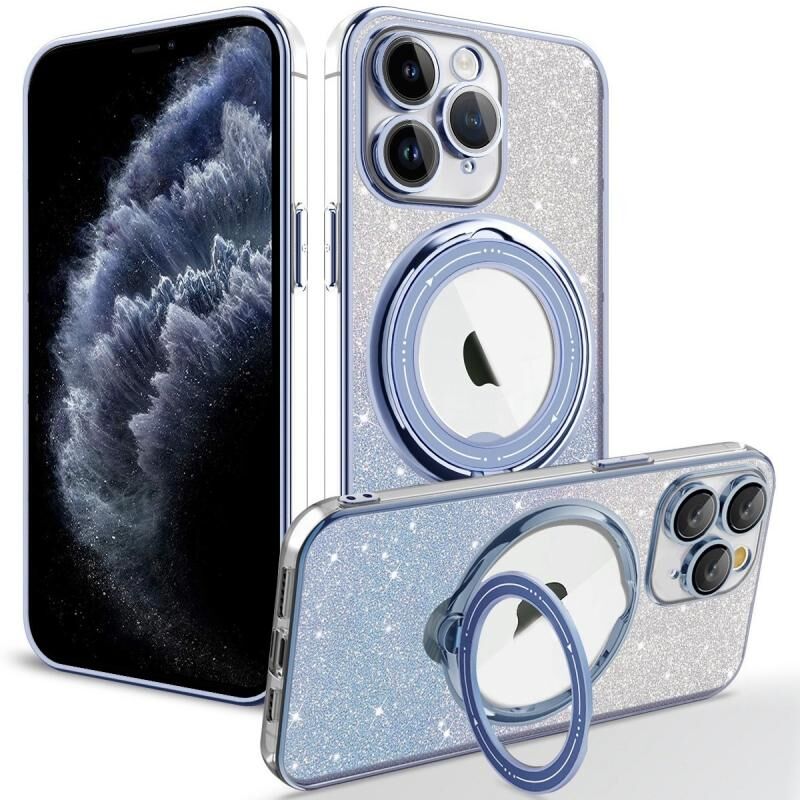 For iPhone 11 Pro Max Rotation MagSafe Holder Gradient Glitter TPU Phone Case(Sierra Blue)