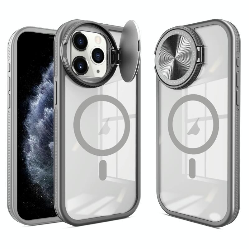 For iPhone 11 Pro Max Round Camshield MagSafe TPU Hybrid PC Phone Case(Grey)