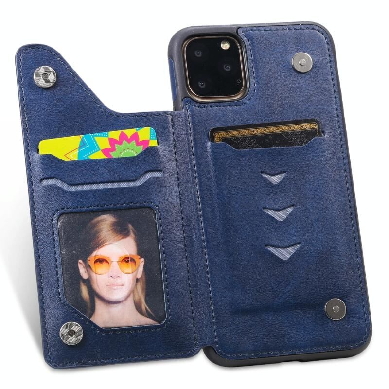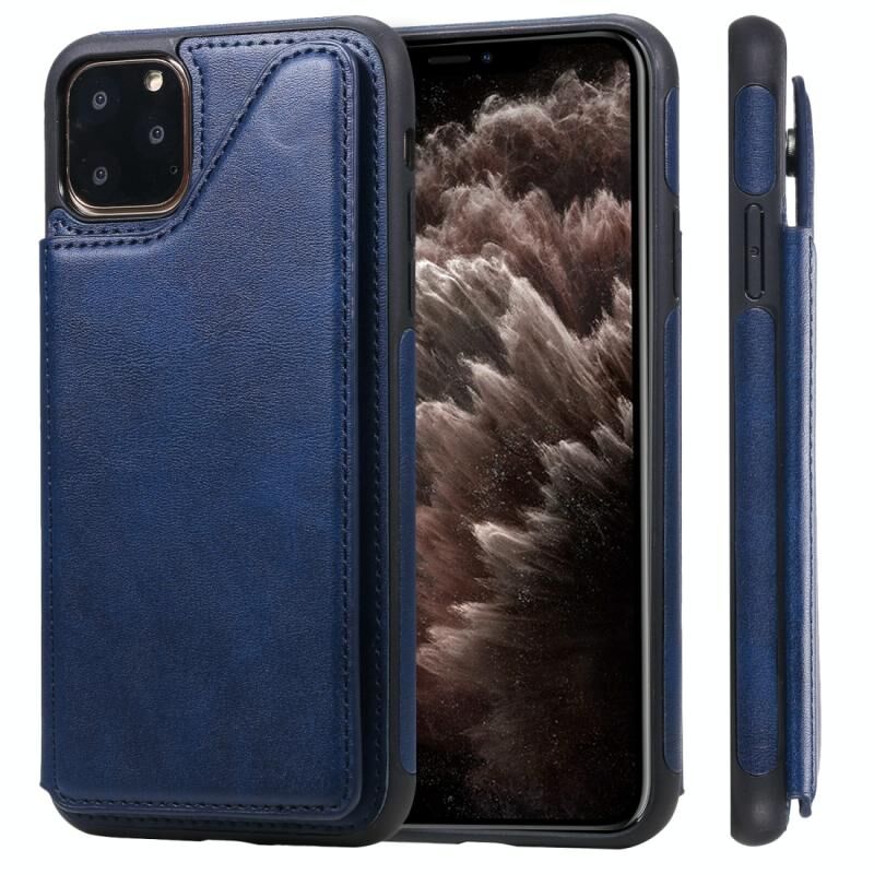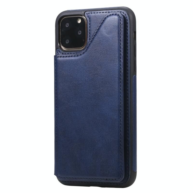 For iPhone 11 Pro Max Shockproof Calf Texture Protective Case with Holder & Card Slots & Frame(Blue)