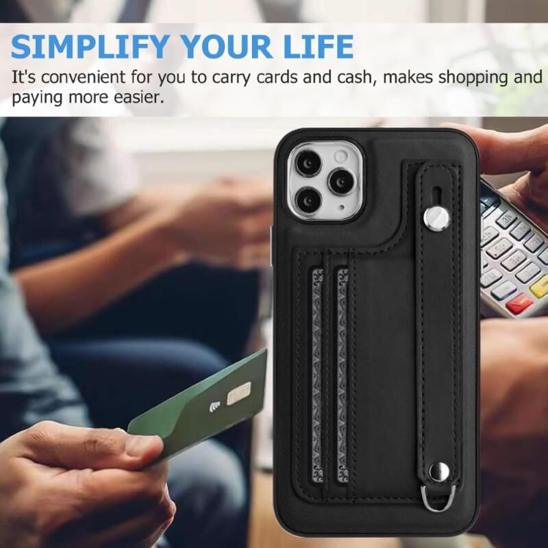 For iPhone 11 Pro Max Shockproof Leather Phone Case with Wrist Strap(Black)