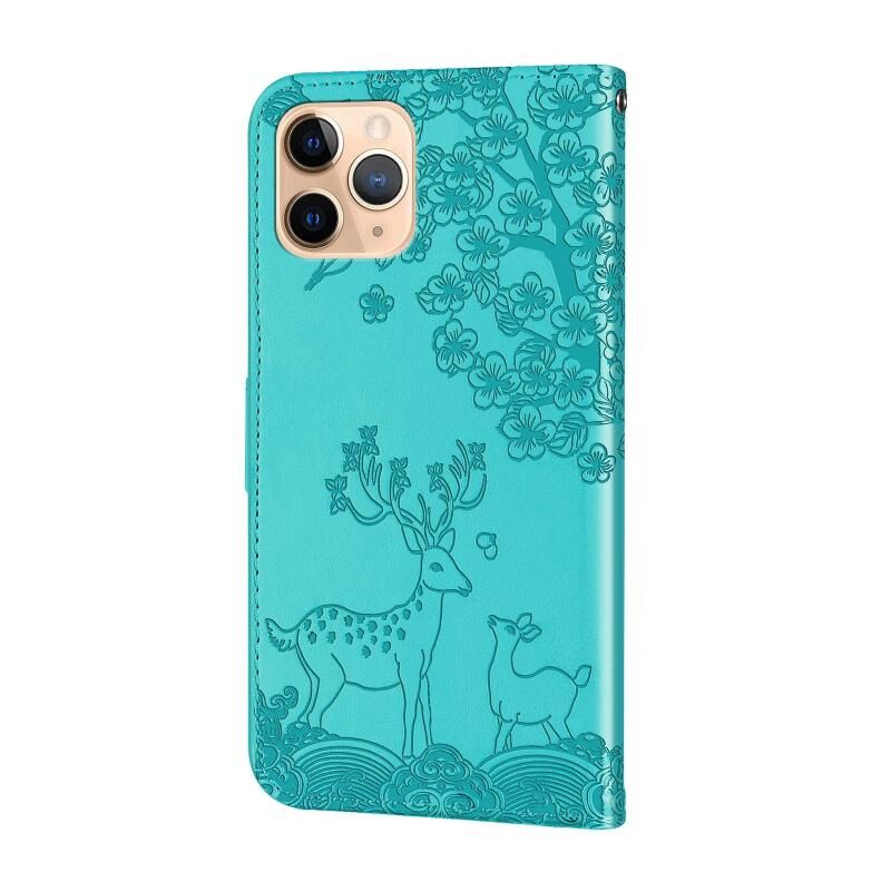 For iPhone 11 Pro Max Sika Deer Embossing Pattern Horizontal Flip PU Leather Case with Holder & Card Slot & Wallet & Photo Frame (Green)