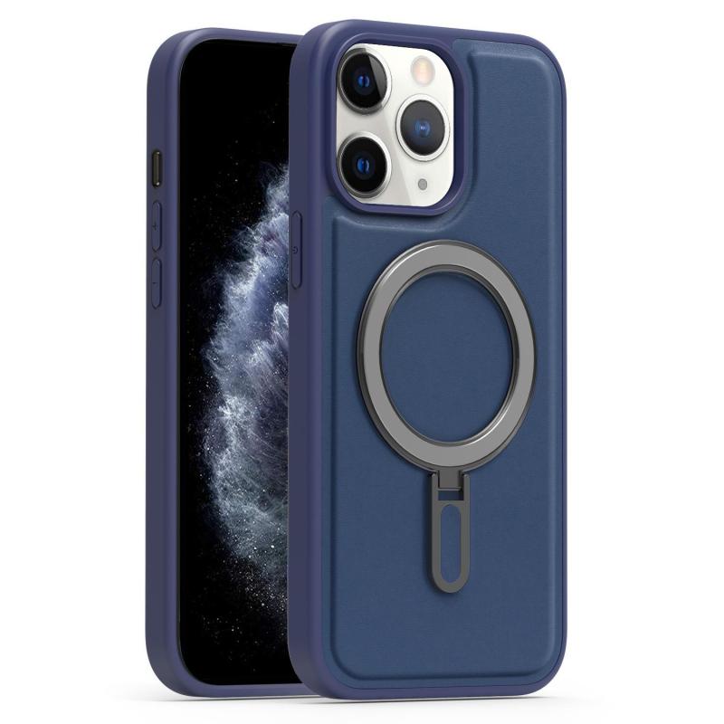 For iPhone 11 Pro Max Silver Shield MagSafe Holder Shockproof Phone Case(Deep Blue)