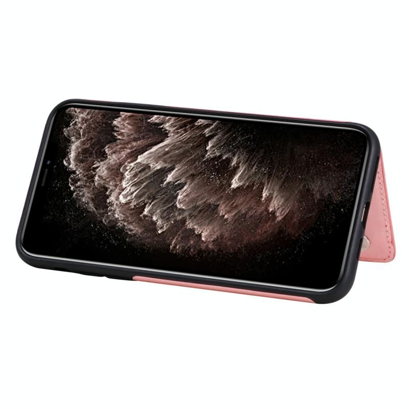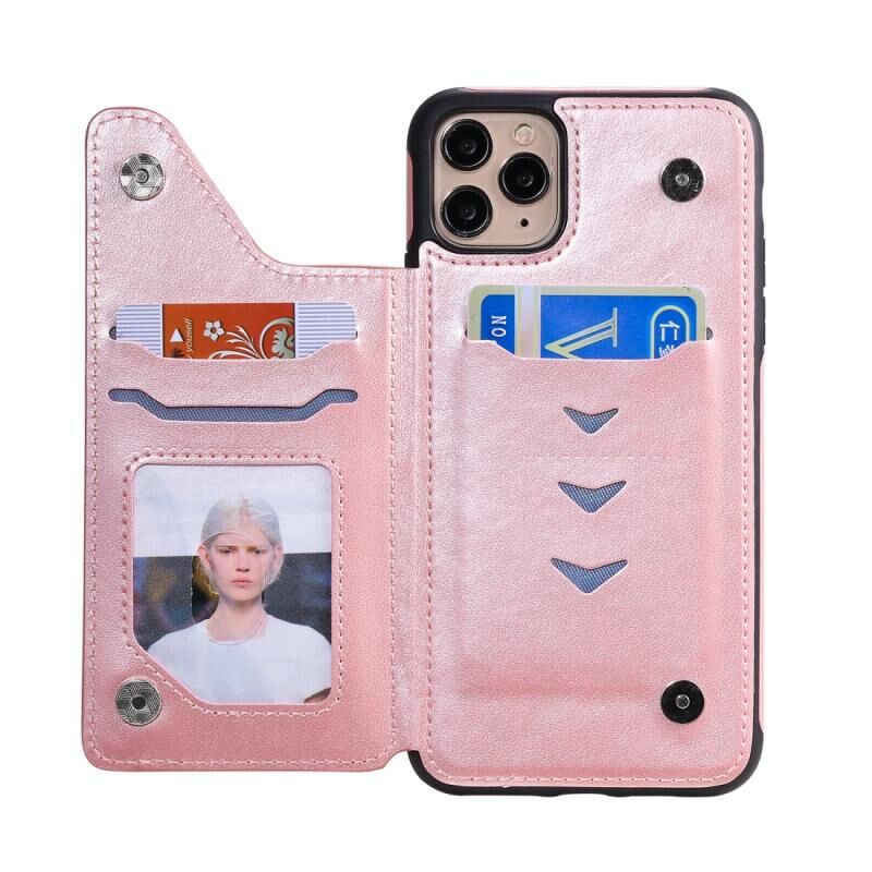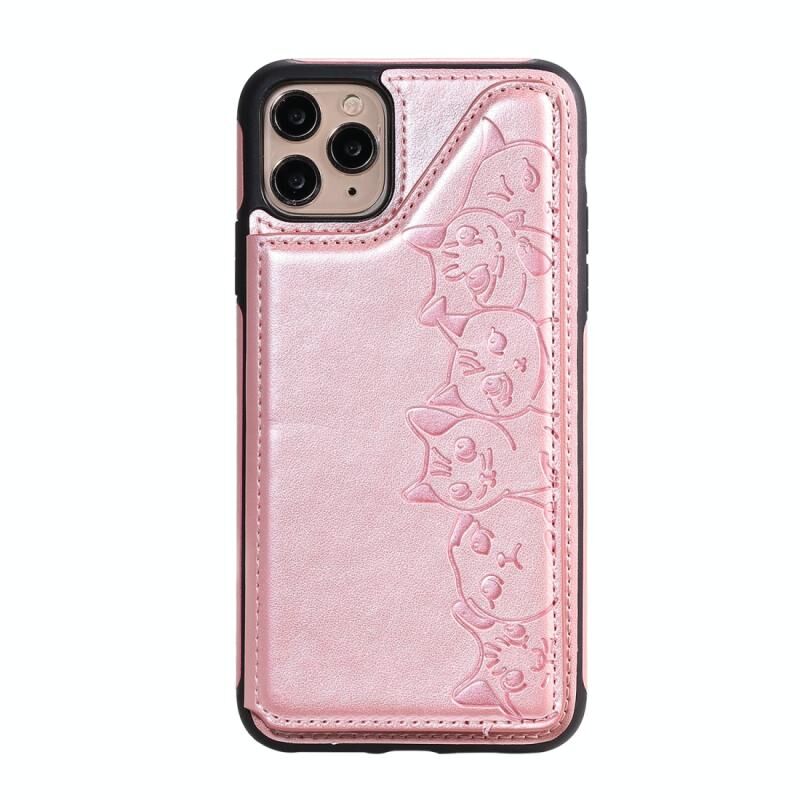 For iPhone 11 Pro Max Six Cats Embossing Pattern Protective Case with Holder & Card Slots & Photo Frame(Rose Gold)