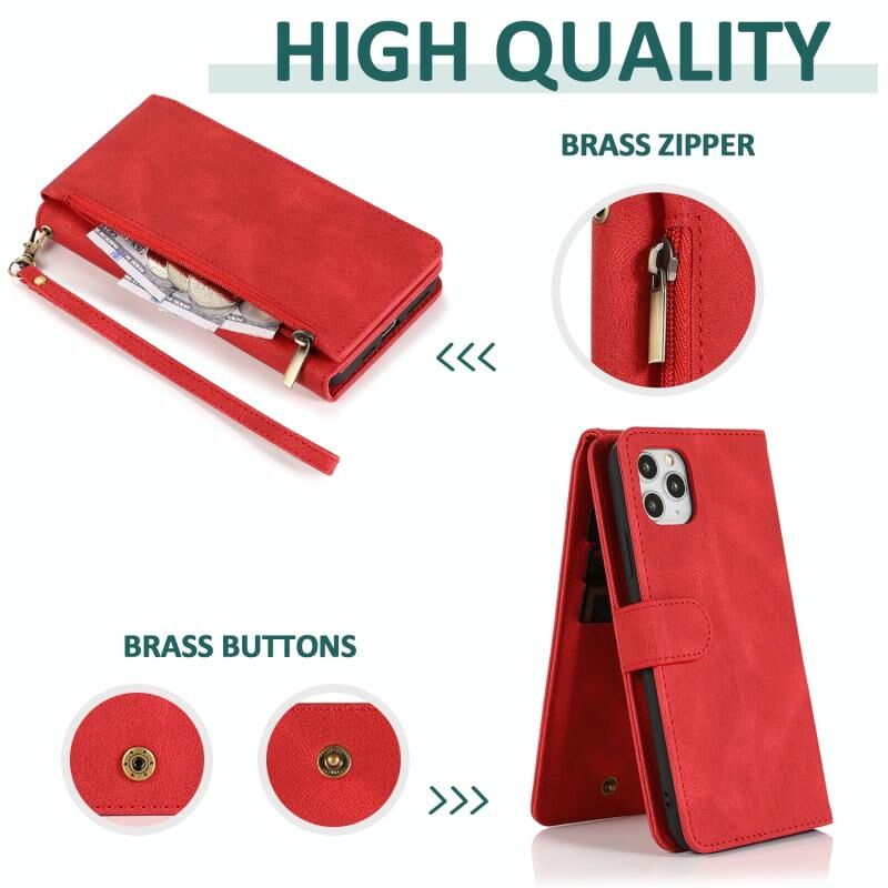 For iPhone 11 Pro Max Skin-feel Crazy Horse Texture Zipper Wallet Bag Horizontal Flip Leather Case with Holder & Card Slots & Wallet & Lanyard (Red)
