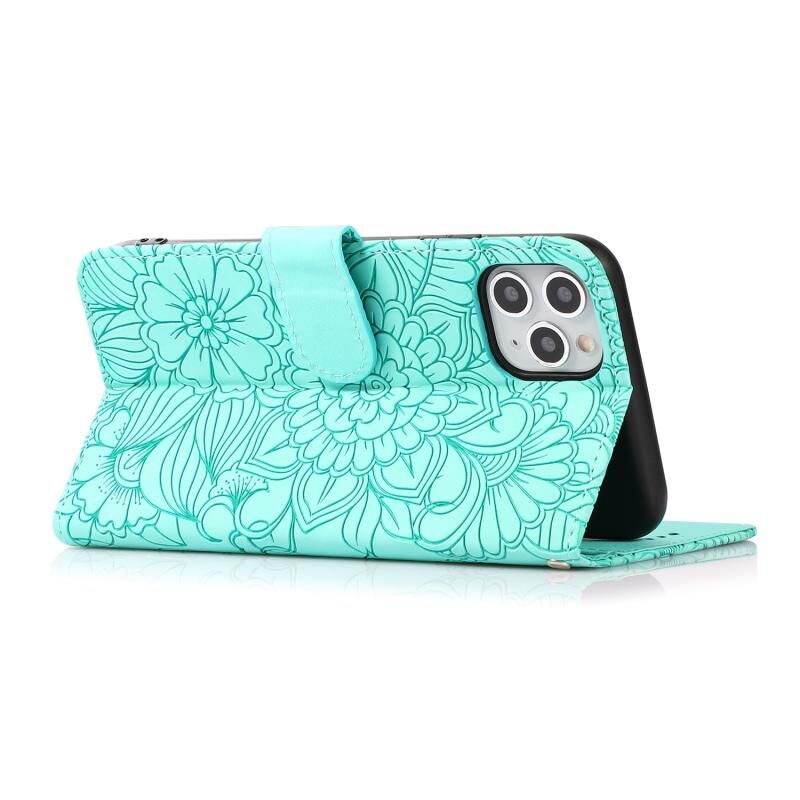 For iPhone 11 Pro Max Skin Feel Embossed Sunflower Horizontal Flip Leather Case with Holder & Card Slots & Wallet & Lanyard (Green)