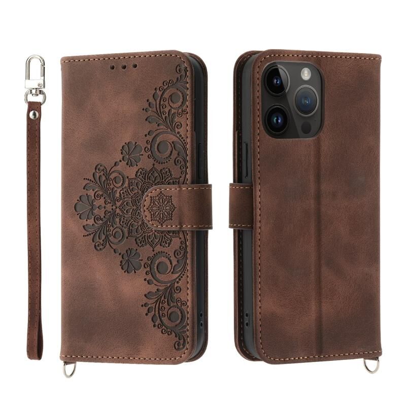 Θήκη τηλεφώνου από δέρμα με ανάγλυφα λουλούδια και αίσθηση δέρματος για iPhone 11 Pro Max (Μαύρο)