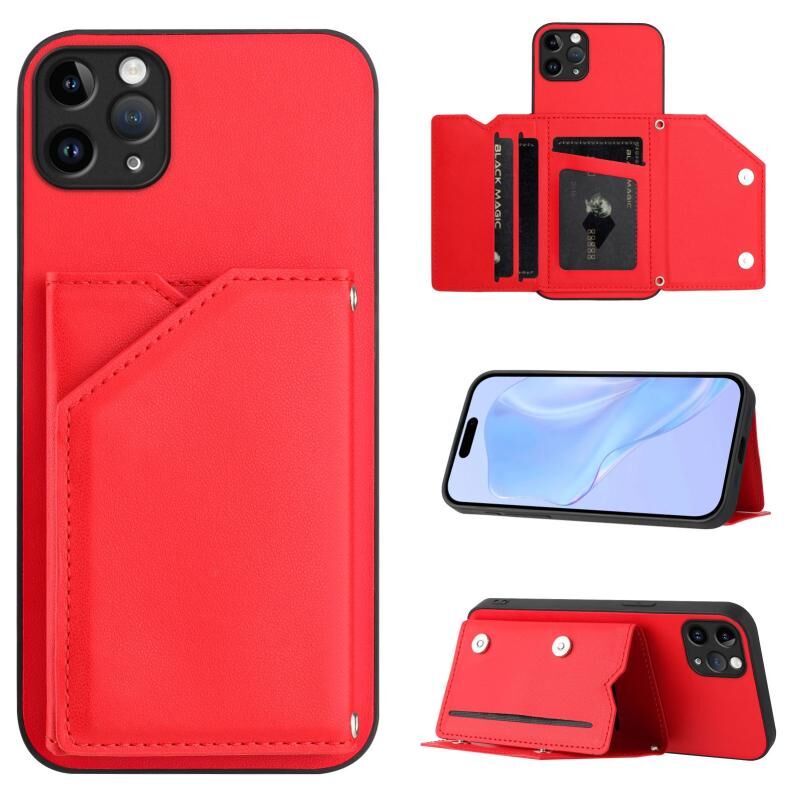 Θήκη τηλεφώνου για iPhone 11 Pro Max με αίσθηση δέρματος, τέσσερις θήκες για κάρτες και λουρί καρπού (Κόκκινο)