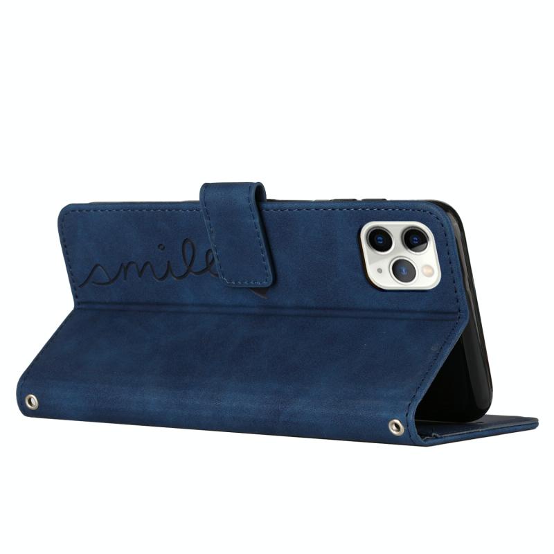 For iPhone 11 Pro Max Skin Feel Heart Pattern Leather Phone Case (Blue)