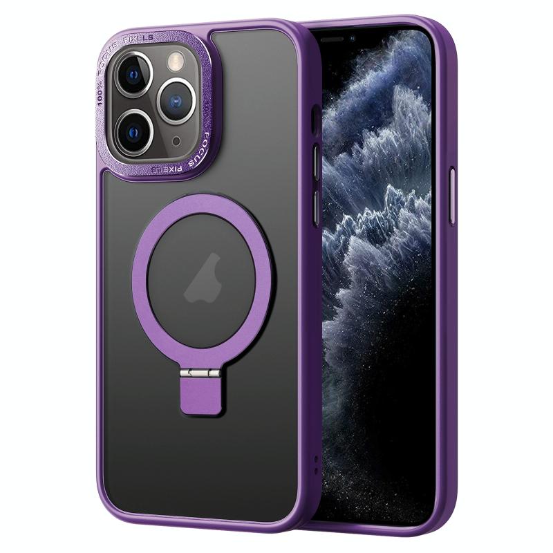 For iPhone 11 Pro Max Skin Feel MagSafe Magnetic Holder Phone Case(Purple)