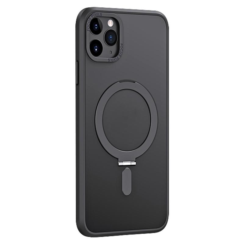 For iPhone 11 Pro Max Skin Feel MagSafe Shockproof Phone Case with Holder(Black)