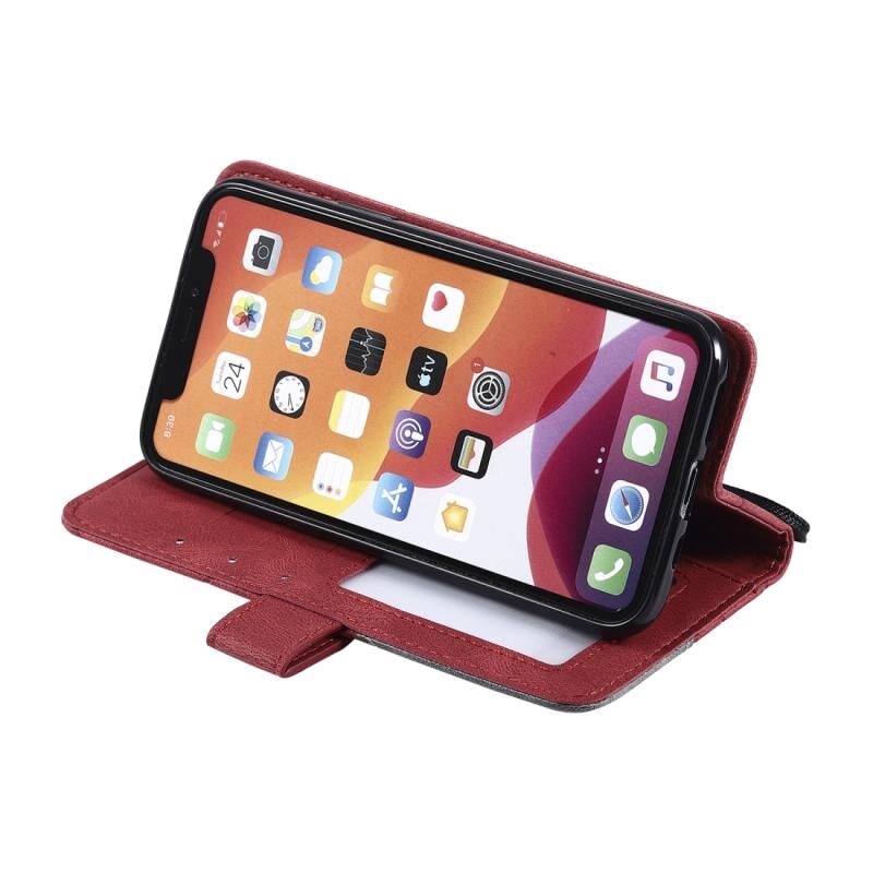 For iPhone 11 Pro Max Skin Feel Splicing Horizontal Flip Leather Case with Holder & Card Slots & Wallet & Photo Frame(Red)